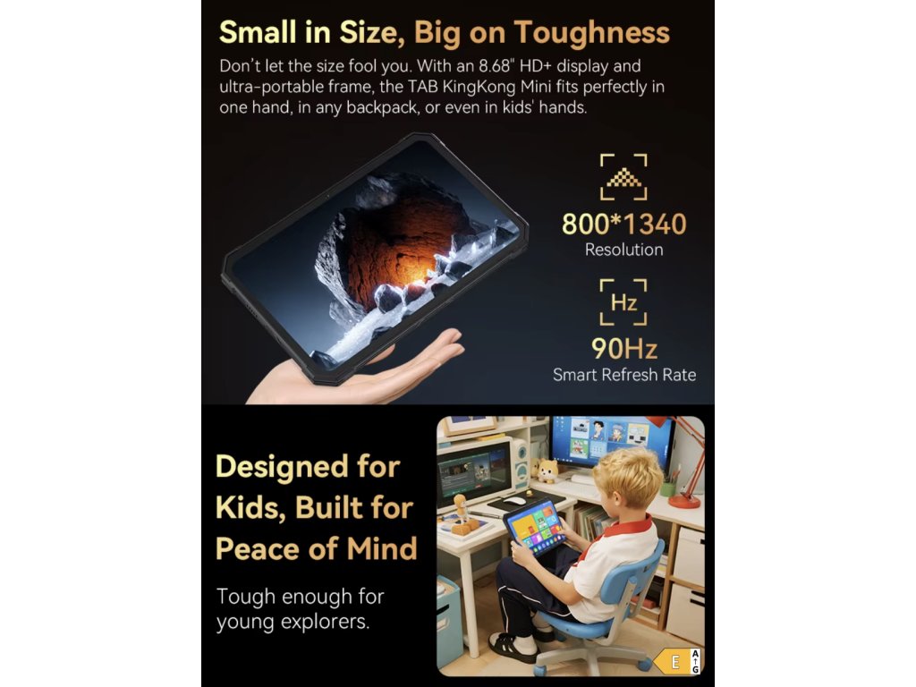 A Cubot KingKong MiNi egy olyan táblagép, amelyet olyan munkákhoz terveztek, ahol a szokásos eszközök kudarcot vallanak. Kompakt kialakításának köszönhetően kényelmesen elfér a kézben és a táskában, miközben ellenáll a pornak, víznek, eséseknek és extrém hőmérsékleteknek. Tanúsítványok IP68 / IP69K és katonai szabvány MIL-STD-810H biztosítják, hogy ez az eszköz a legigényesebb körülmények között is működni fog – az építkezéstől, a raktárakon át a szabadtéri expedíciókig.