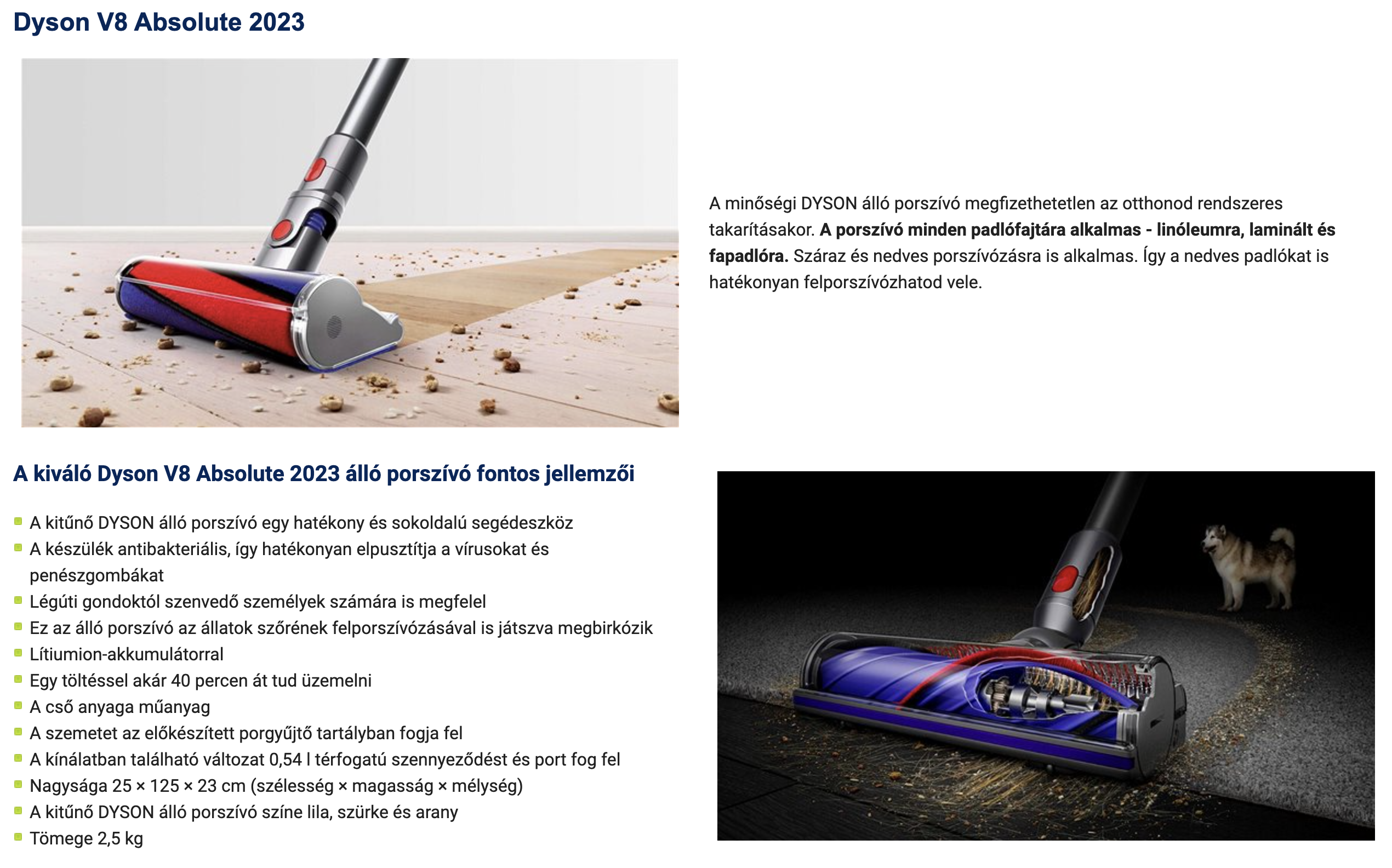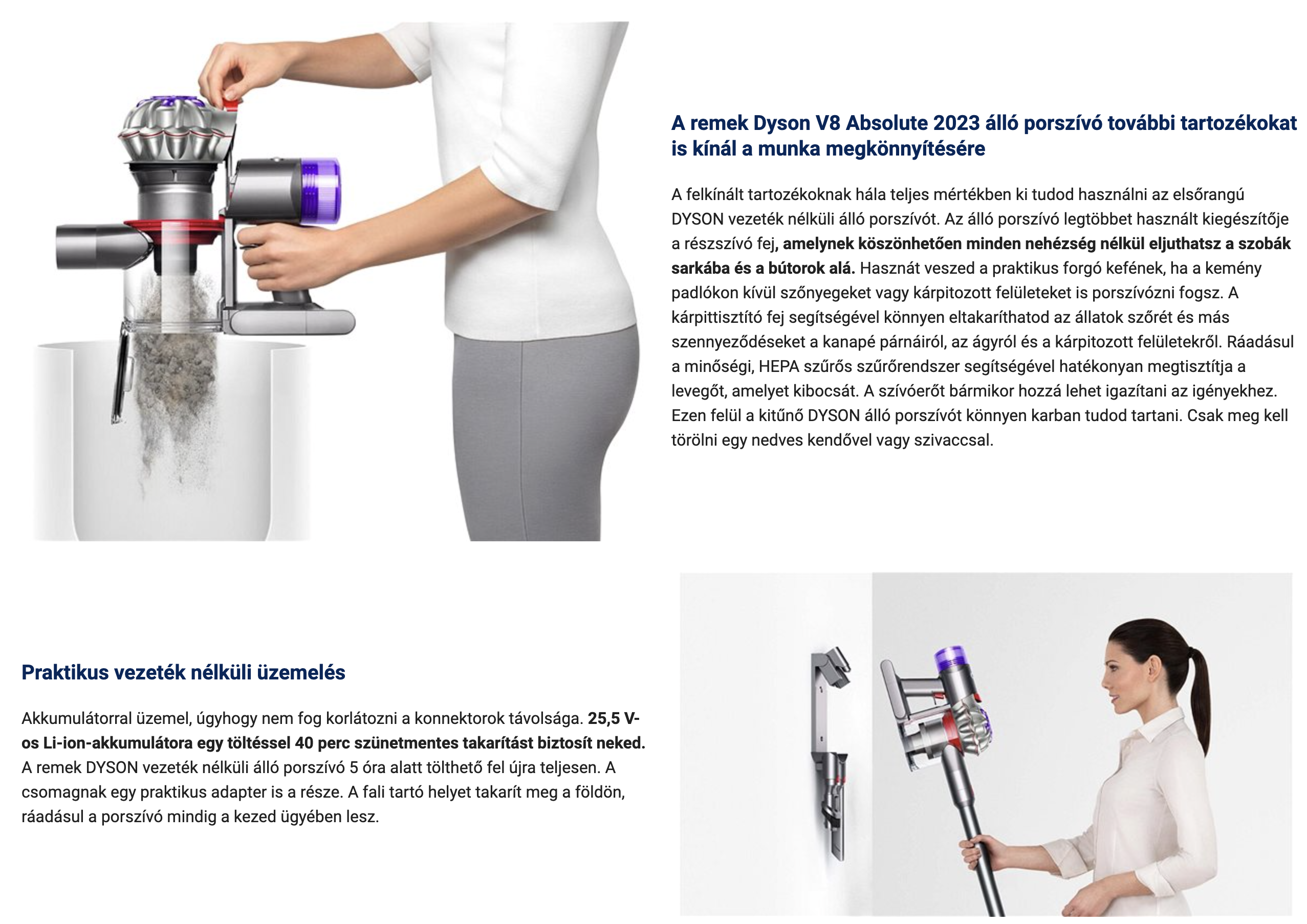 Dyson V8 Absolute + 36 hónapos kiterjesztett garancia utalvány és hiba esetén az áru cseréjére vonatkozó garancia
