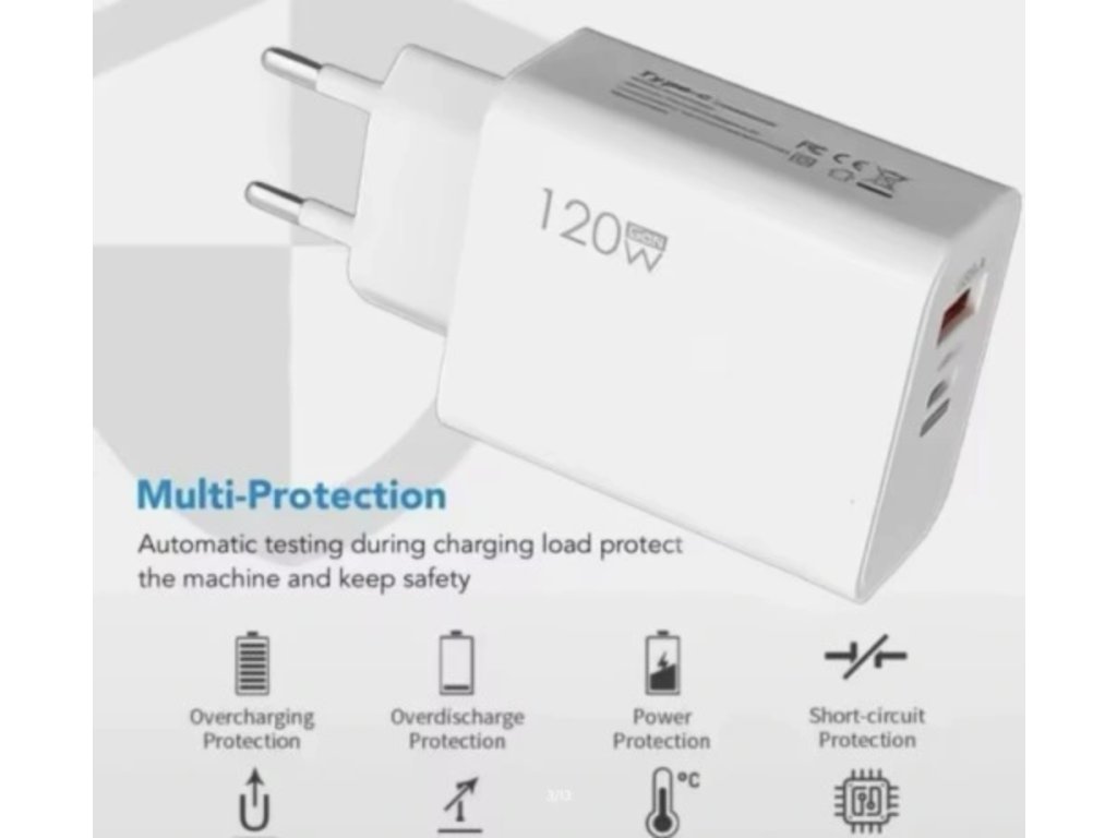 A 120 W-os hálózati töltő elegáns fehér színben, USB és USB-C portokkal megbízható megoldást kínál minden energiaigényedre. Az innovatív technológiának köszönhetően gyors és hatékony töltést biztosít számos eszköz, köztük okostelefonok és táblagépek, valamint egyéb eszközök számára.
